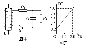 为1500匝,横截面积S 为 20cm2。螺线管导线电阻r 为 1.0Ω,R1为 4.0Ω,R2 为 5.0Ω,电容器的电容C为30μF。在一段时间内,穿过螺线管的磁场的磁感应强度B按如图乙所示的规律变化。求: