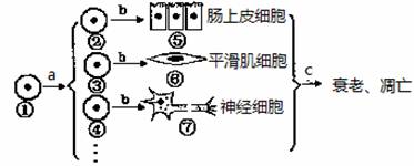 3.下图为人体某细胞所经历的生长发育各个阶段示意图,图中①~⑦为不同的细胞,a~c表示细胞所进行的生理过程。据图分析,下列叙述正确的是 ( )