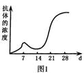 右图为某人接种卡介苗一段时间血液中结核杆菌抗体的浓度随时间