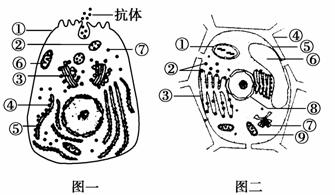 B.图一所示细胞合成的抗体以主动运输方式进入内环境,需要该图中⑥提供能量