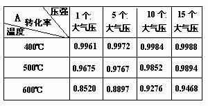 2C(g)生产物质C,经实验测定压强及温度对气体A转化率的影响如下表:
