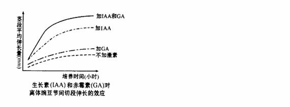 4.研究发现生长素(IAA)和赤霉素(GA)对豌豆茎切段等离体器官的作用如下图所示。下