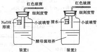 右图为探究酵母菌呼吸作用类型的装置图,下列现象中能说明酵母菌既进行有氧呼吸,同时又进行无氧呼吸的是