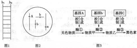 图l表示某生物的b基因正常转录过程中的局部分子状态图,图2表示该生物正常个体的体细胞基因和染色体的关系,该生物的黑色素产生需要如图3所示的三类基因参与控制,三类基因的控制均表现为完全显性,下列说法正确的是
