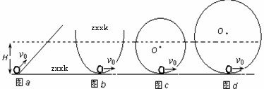 D.以初速v0沿半径为R的光滑圆轨道从最低点向上运动(图d、R>H)