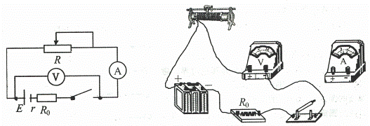 ( 2 ) (8 分)电池的内阻很小,不便于直接测量。某探究小组的同学将一只2.5Ω的保护电阻R0与电池串联后再用电流表和电压表测电池的电动势和内阻,实验电路如图所示。
