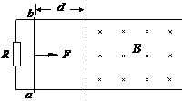 (18分)如图所示,两根平行金属导轨固定在同一水平面内,间距为l,导轨左端连接一个电阻.一根质量为m、电阻为r的金属杆ab垂直放置在导轨上.在杆的右方距杆为d处有一个匀强磁场,磁场方向垂直于轨道平面向下,磁感应强度为B.对杆施加一个大小为F、方向平行于导轨的恒力,使杆从静止开始运动,已知杆到达磁场区域时速度为v,之后进入磁场恰好做匀速运动.不计导轨的电阻,假定导轨与杆之间存在恒定的阻力.求: