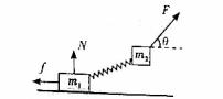 17.如图所示,质量分别为m1、m2 的两个物体通过轻弹簧连接,在力F的作用下一起沿水平方向做匀速直线运动(m1在地面,m2在空中),力F与水平方向成