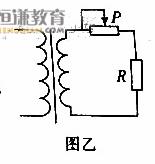 19.一理想变压器原、副线圈的扎数比为10:1。原线圈输入电压的变化规律如图甲所示,复线圈所接电路如图乙所示,P为滑动变阻器的触头