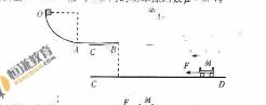 24.(15分)如图所示,四分之一圆轨道OA与水平轨道AB相切,它们与另一水平轨道CD在同一竖直面,圆轨道OA的半径R=0.45m,水平轨道AB长s1=3m, OA与AB均光滑。一滑块从O点静止释放,当滑块经过A点时,静止在CD上的小车在F=1.6N的水平恒力作用下启动,运动一段时间后撤去力F。当小车在CD上运动了s2=3.28m时速度v=2.4m/s,此时滑块恰好落入小车中。已知小车质量M=0.2kg,与CD间的动摩擦因数