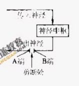 (3)剪断支配脊蛙左后肢的传出神经(见右图),立即刺激A端____________(能、不能)看到左后肢收缩活动。若刺激剪断处的某一段出现伸缩活动,该活动__________(能、不能)称为反射活动,主要原因是__________________________________。![]()