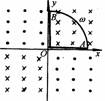 4. 如图所示,大小相等的匀强磁场分布在直角坐标系的四个象限里,相邻象限的磁感强度B的方向相反,均垂直于纸面,现在一闭合扇形线框OABO,以角速度ω绕Oz轴在xOy平面内匀速转动,那么在它旋转一周的过程中(从图中所示位置开始计时),线框内感应电动势与时间的关系图线是: