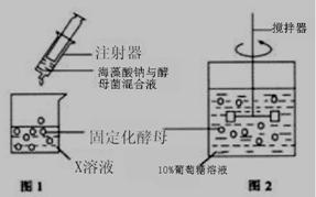 48.下图1表示制备固定化酵母细胞的有关操作,图2是利用固定化酵母细胞进行酒精发酵的示意图.下列叙述正确的是( )