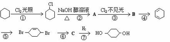 32.(16分)由环己烷可制得1, 4 – 环己二醇,下列有7步反应(其中无机产物都已略去),其中有②步属于消去反应,③步属于加成反应。试回答: