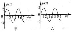 一列简谐波沿X轴正方向传播。图甲是t= 0时传播方向上一小段波形图,图乙是某质点位移随时间变化的振动图线。则下列说法正确的是( )
