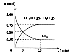 CO2、CH3OH(g)和H2O(g)的物质的量(n)随时间