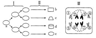 D、图Ⅲ细胞处于有丝分裂后期,若图Ⅰ中a的基因型为AaBb,则Ⅲ所产生的两个子细胞基因型应为AB与ab或Ab与aB