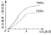 (3)上图表示玉米在两种光照条件下的光合速率变化曲线,当外界CO2浓度为a时,玉米叶片光合作用所固定的CO2量与 相等;当CO2浓度为b时,在350lx光照条件下增加CO2浓度,光合速率不再增加,这主要是因为光合作用的 阶段产生的