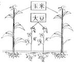 43、农业生产中为提高作物产量,常将玉米和大豆间隔种植(间作),如图所示,请运用相关生物学知识回答下列问题:
