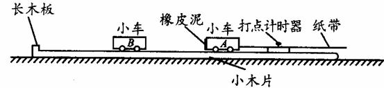 30、某同学设计了一个用打点计时器探究碰撞过程中不变量的实验:在小车A的前端粘有橡皮泥,推动小车A使之做匀速运动.然后与原来静止在前方的小车B相碰并粘合成一体,继续做匀速运动,他设计的具体装置如图所示.在小车A后连着纸带,电磁打点计时器电源频率为50Hz,长木板下垫着小木片用以平衡摩擦力.