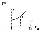 2C,其中A、B、C均为气体,下图中的曲线是该反应在不同温度下的平衡曲线,x轴表示温度,y轴表示B的转化率,图中有a、b、c三点,如图所示, 则下列描述正确的是:
