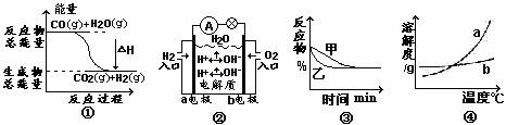 A.图①表示化学反应中能量的变化,反应CO(g)+H2O(g)= CO2(g)+H2(g)的△H>0