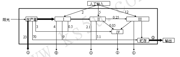 B.由生产者、Ⅰ、Ⅱ、Ⅲ、Ⅳ构成的捕食食物链中,能量流动是单向的、逐级递减的