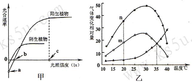⑷已知甲图是在乙图m点的条件下测得的曲线,如果在乙图的n点条件下再次进行测定,则c 点将向___________(“左”或“右”)移动。