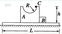 25.(19分)如图所示,长为L的光滑平台固定在地面上,平台正中间放有小物体A和B,两者彼此接触A的上表面是半径为R的半圆形轨道,轨道顶端距台面的高度为h处,有一个小物体C,A、B、C的质量均为m,在系统静止时释放C,己知在运动过程中A、C始终接触,试求: