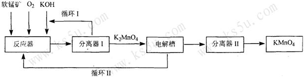 27.(12分)KMnO4是一种常用的强氧化剂,工业上可以用软锰矿(主要成分为MnO2)为原料,通过液相法生产,即在碱性条件下用氧气氧化MnO2得到K2MnO4,分离后得到K2MnO4;再用铂板作阳极,铁作阴极电解K2MnO4溶液得到KMnO4。简略生产过程如下图所示: