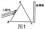 激发态的氢原子向低能级跃迁,发出的光照射到一块等腰三角形玻璃棱镜AB面上,从AC面出射的光线将照射到一块金属板上,如图1所示.若只考虑第一次照射到AC面的光线,则下列说法中正确的是( )