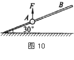 15.(14分)如图10所示,一质量为1 kg的小球套在一根固定的直杆上,直杆与水平面夹角θ为30°。现小球在F=20N的竖直向上的拉力作用下,从A点静止出发向上运动,已知杆与球间的动摩擦因数m为。试求: