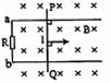 16.在磁感应强度为B、方向如图所示的匀强磁场中,金属杆PQ在宽为L的平行金属导轨上以速度v向右匀速滑动,PQ中产生的感应电动势为e1;若磁感应强度增为2B,其它条件不变,所产生的感应电动势大小变为e2。则e1与e2之比及通过电阻R的感应电流方向为 ( )