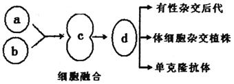 (2)若a、b表示两种植物体细胞,则由d细胞形成杂种植株的原理是 ,这种育种方法的优点是 。