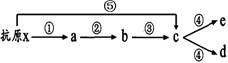 B.抗原x经过程①②③的呈递后,能刺激细胞c增殖分化