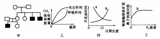 D.由丁可知,氧浓度不超过B点时,根细胞吸收矿质离子的量随氧浓度的增大而增大