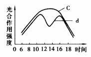 A.温度较高、气孔关闭,是造成图中d曲线所示植物