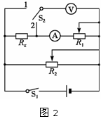 第二步:保持两滑动变阻器的滑动头位置不变,将单刀双掷开关S2向2闭合,读出此时电压表和电流表的示数U2、I2.