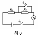 (6分)如图6所示,电源电压为6V且保持不变,R2为10Ω,当开关S1,S2闭合时,电流表读数为0.3A。求: