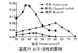 A.不同鱼类的ACP活性都会随着温度的上升而增大