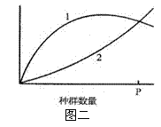 C.图二中的曲线2可表示丙种群从浅海区到深海区生殖数量的变化