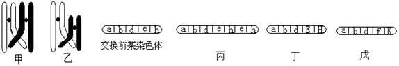 4、染色体之间的交叉互换可能导致染色体的结构或基因序列的变化。下列图中,甲、乙两图分别表示两种染色体之间的交叉互换模式,丙、丁、戊图表示某染色体变化的三种情形。则下列有关叙述正确的是( )