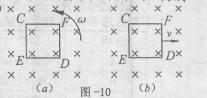 如图-10所示,正方形闭合导线框处在磁感应强度恒定的匀强磁场中,C、E、D、F为线框中的四个顶点,图(a)中的线框绕E点转动,图(b)中的线框向右平动,磁场足够大。下列判断正确的是 ( )