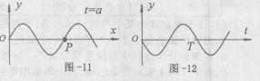 18.图-11是一列平面简谐横波在t=a(a>0)时刻的波动图像,波沿x轴正方向传播。图-12是介质中质点P的振动图像,振动周期为T。由图可知,a的最小值是 ( )