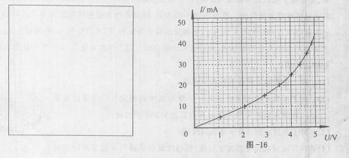 ②该小组按照自己设计的电路进行实验。实验中改变滑动变阻器滑片的位置,使加在热敏电阻两端的电压从0开始逐渐增大到5V,作出热敏电阻的I一U图线。如图-16所示。