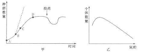 (3)乙图表示某时刻该田鼠种群的年龄组成,则甲图A-D中的______点不可能出现此种年龄组成。