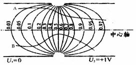 21.电视显像管的第二和第三阳极是两个直径相同的同轴金属圆筒。两电极间的电场即为显像管中的主聚焦电场。图示为主聚焦电场中的等势面,数字表示电势值?若有平行于中心轴线的电子束人射,则下列说法中正确的是 ( )