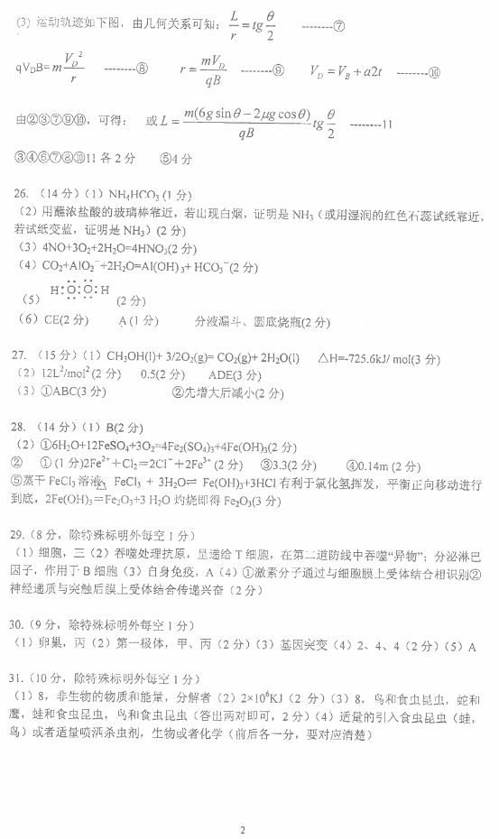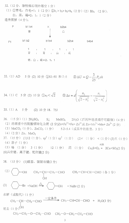 (二)选考题:共45分,请考生从给出的3道物理题、3道化学题、2道生物题中每科任选一题做答,并用2B铅笔在答题卡上把所选题目的题号涂黑。注意所做题目的题号必须与所涂题目的题号一致,在答题卡选答区域指定位置答题。如果多做,则每学科按所做的第一题计分。