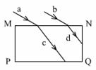 如图所示,两束相同的平行单色光a、b照射到一块矩形玻璃砖的上表面,发生折射后分别照射到PQ和NQ界面上,下列说法正确的是 ( )