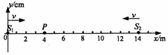 均匀介质中两波源S1、S2分别位于x轴上x1=0、x2=14m处,质点P位于x轴上xp=4m处,t=0时刻两波源同时开始由平衡位置向y轴正方向振动,振动周期均为T=0.1s,传播速度均为v=40m/s,波源S1的振幅为A1=2cm,波源S2的振幅为A2=3cm,则从t=0至t=0.35s内质点P通过的路程为